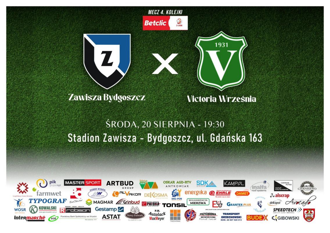 Czas na 4. kolejkę w ramach której zmierzymy się na wyjeździe z Zawiszą Bydgoszcz Środa, 20 sierpnia – godz. 19:30, Bydgoszcz, Stadion Zawisza