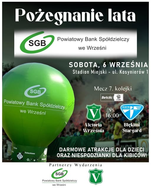 Zapraszamy serdecznie na pożegnanie lata, które odbędzie się już w najbliższą sobotę, podczas kolejnego meczu Betclic 3. Ligi Tego dnia o godzinie 16:00 wybrzmi pierwszy gwizdek meczu pomiędzy Victorią Września, a Błękitnymi Stargard. Podczas meczu,...